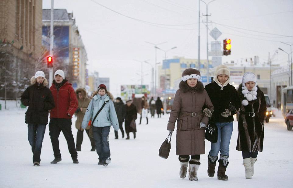 Οι περισσότεροι άνθρωποι περνούν όσον το δυνατόν λιγότερο χρόνο σε εξωτερικούς χώρους για να αποφευχθούν οι ψυχρές θερμοκρασίες. Με τέτοιες θερμοκρασίες, αν ένας άνθρωπος βγει έξω γυμνός θα πεθάνει μέσα σε 60 δευτερόλεπτα από το κρύο. Συχνά έξω είναι σκοτεινά και έρημα, με μόνο τρεις ώρες του φωτός το χειμώνα.