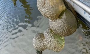 Ο φορέας Άγριας Ζωής δημοσίευσε: «Τι είναι αυτό; Αν είστε για βαρκάδα μπορεί να παρατηρήσετε αυτές τις παράξενες μπάλες που μοιάζουν με ζελέ και κρέμονται από βυθισμένα κλαδιά δέντρων.