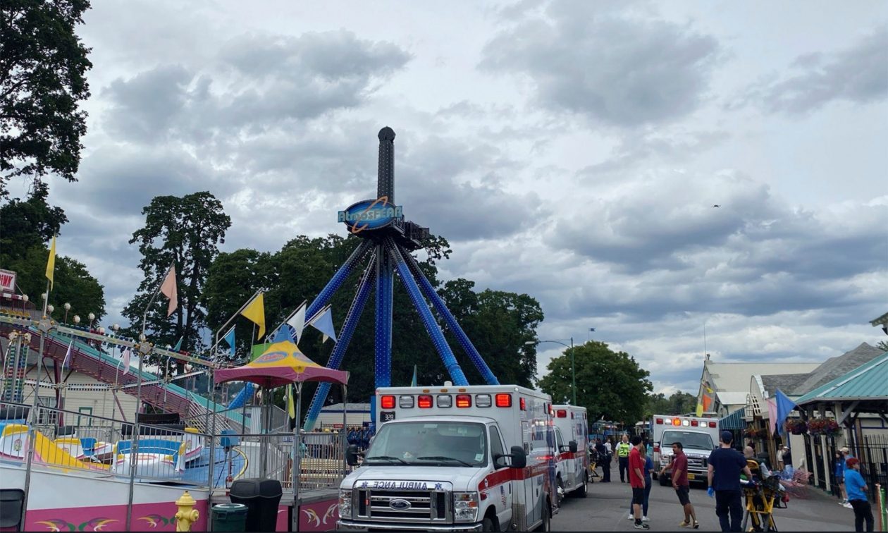 Οι υπηρεσίες αντιμετώπισης έκτακτων αναγκών έφθασαν μετά από 25 λεπτά, ενώ διασώστες από την πυροσβεστική, μαζί με τους μηχανικούς του λούνα παρκ κατέβασαν χειροκίνητα το παιχνίδι και μπόρεσαν να απεγκλωβίσουν τους επισκέπτες.