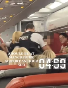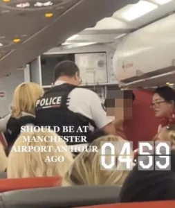 Φωτογραφίες που κυκλοφόρησαν στα μέσα κοινωνικής δικτύωσης δείχνουν μια σκηνή χάους με τουλάχιστον δύο Γάλλους αστυνομικούς να εμφανίζονται και να συλλαμβάνουν ή να συγκρατούν μια γυναίκα, η οποία φορούσε μαύρο καπέλο και κόκκινη μπλούζα, ενώ η αεροπορική εταιρεία Jet2 δεν έχει τοποθετηθεί ακόμα για το συμβάν.