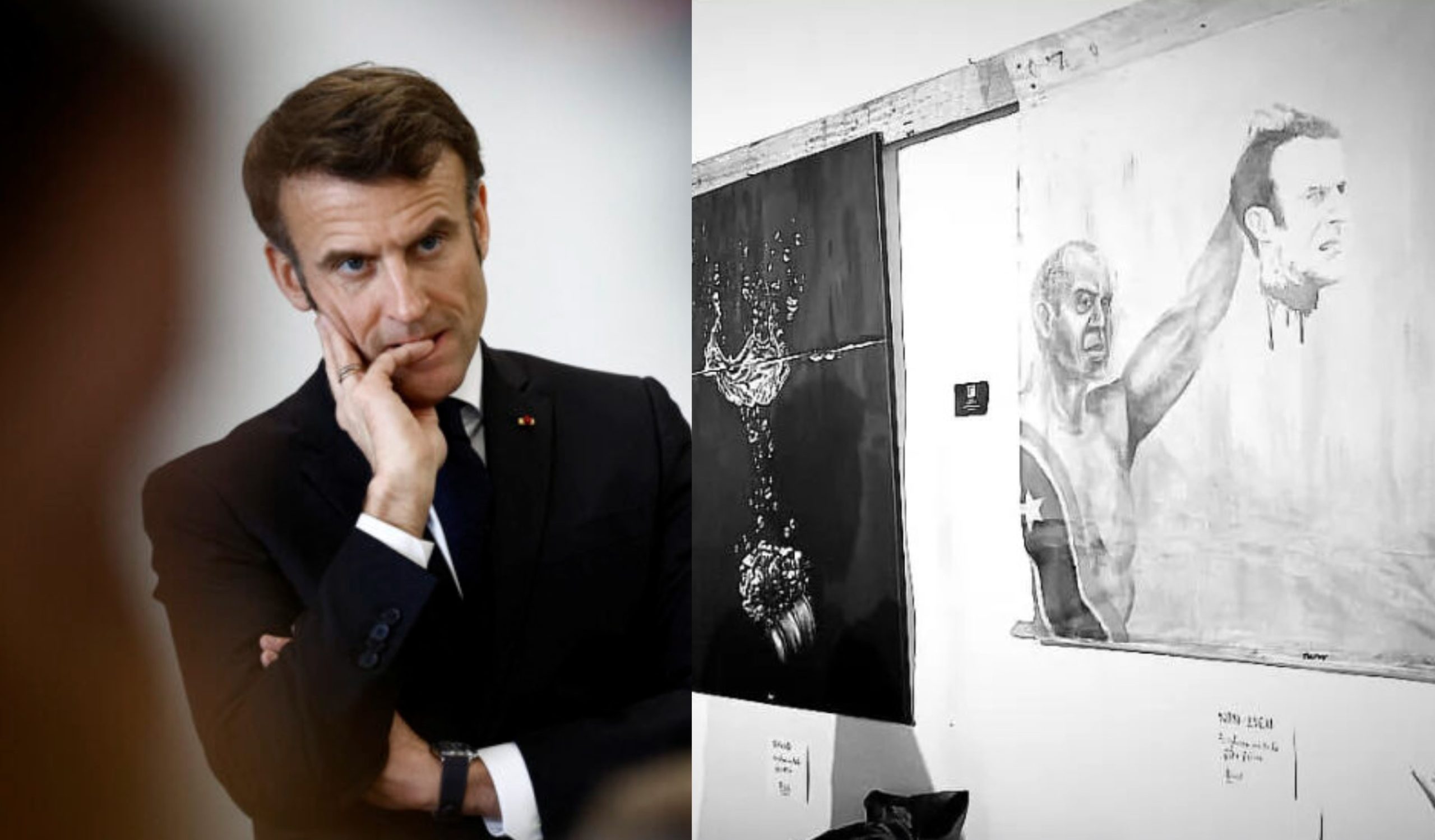 Το έργο, που προκάλεσε την αντίδραση του Γάλλου προέδρου, απεικόνιζε έναν άνδρα που κρατούσε το αποκεφαλισμένο κεφάλι του Μακρόν στον αέρα.