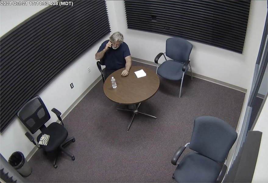 Τα συγκεκριμένα πλάνα, κυκλοφόρησαν από το γραφείο του σερίφη της κομητείας Σάντα Φε, μαζί με μια σειρά από άλλα στοιχεία. Στη διάρκεια της μακράς συζήτησης, που φαίνεται στα στιγμιότυπα, ο Μπάλντουιν χρησιμοποιεί το κινητό του τηλέφωνο, καθώς περιμένει τους αστυνομικούς να εισέλθουν στην αίθουσα για την ανάκριση.
