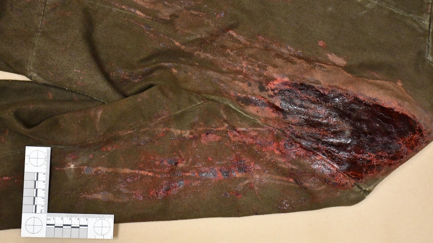 Στα στιγμιότυπα φαίνονται ματωμένα ρούχα, μπότες και σεντόνια, καθώς ακόμη πυρομαχικά και ένα όπλο. Επίσης, το μάλλινο καπέλο που φορούσε η Χάτσινς απεικονίζεται ανάμεσα στα αντικείμενα που εξετάζονται από την ασφάλεια.