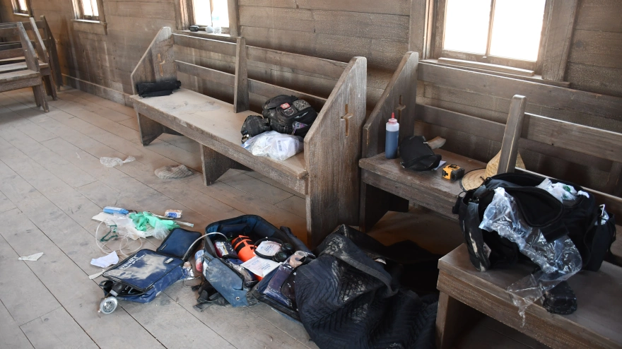 Μετά το βίντεο που δημοσίευσε νωρίτερα, η Daily Mail, με την άτυχη Χαλίνα Χάτσινς να κείτεται αιμόφυρτη στο έδαφος μέσα σε μία εκκλησία, κατά τη διάρκεια των γυρισμάτων του «Rust», το φως της δημοσιότητας είδαν εικόνες από τη στιγμή της ανάκρισης του Άλεκ Μπάλντουιν, τα στοιχεία της έρευνας αλλά και τη σκηνή του εγκλήματος.