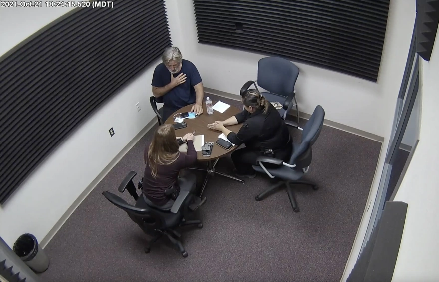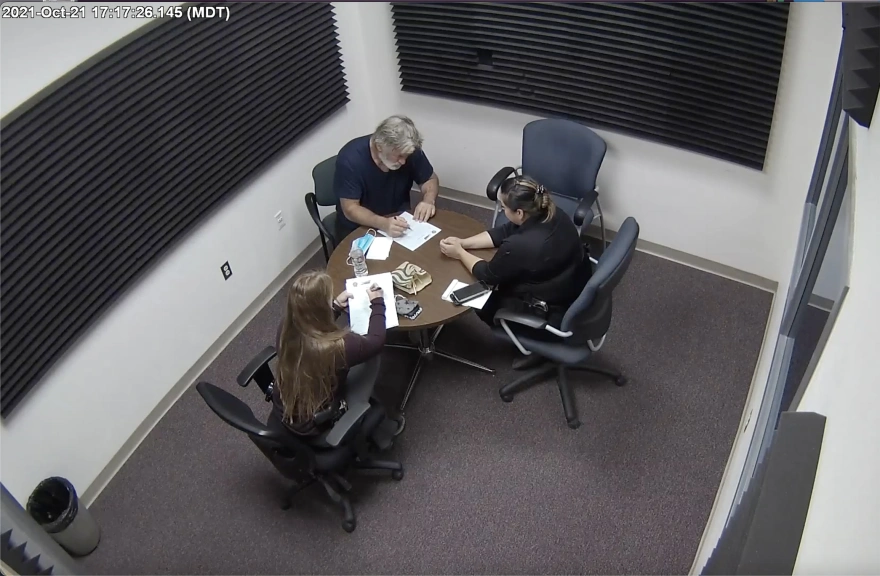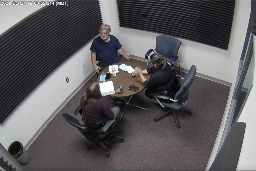 Τα συγκεκριμένα πλάνα, κυκλοφόρησαν από το γραφείο του σερίφη της κομητείας Σάντα Φε, μαζί με μια σειρά από άλλα στοιχεία. Στη διάρκεια της μακράς συζήτησης, που φαίνεται στα στιγμιότυπα, ο Μπάλντουιν χρησιμοποιεί το κινητό του τηλέφωνο, καθώς περιμένει τους αστυνομικούς να εισέλθουν στην αίθουσα για την ανάκριση.