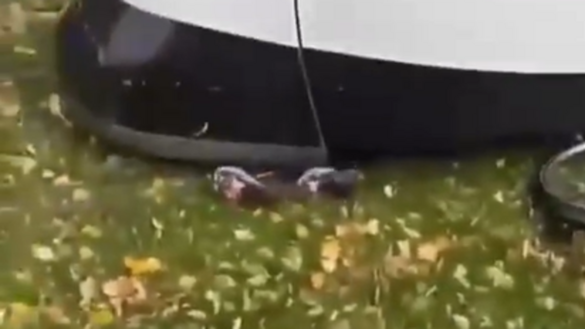 Σε ένα βίντεο που τραβήχτηκε από έναν περαστικό, διακρίνονται μόνο τα πόδια του παιδιού που προεξέχουν από το μπροστινό μέρος του τραμ.