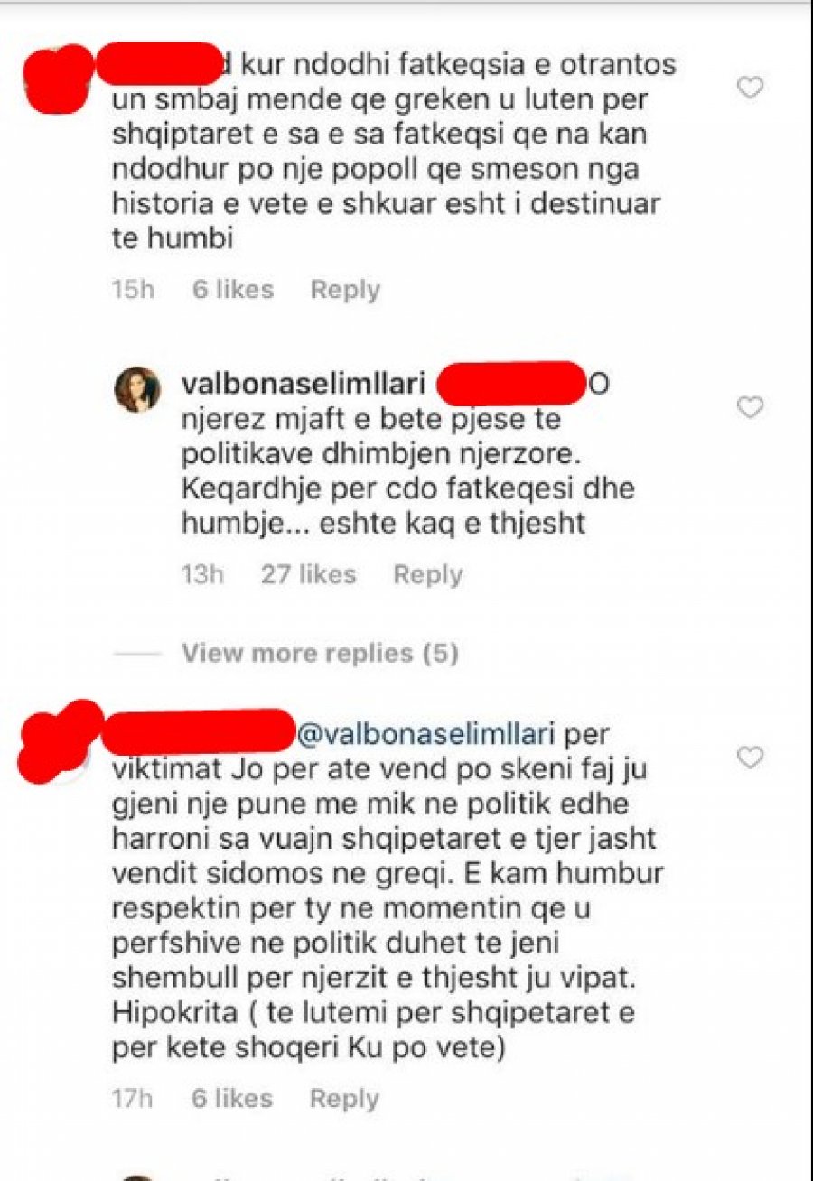 Η Βαλμπόνα Σελιμλλάρι υπεραμύνθηκε τη στάση της στις επικρίσεις των ακολούθων της σημειώνοντας ότι «τον θάνατο κανείς δεν τον θέλει.