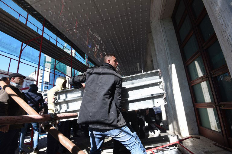 Στη συνέχεια παραβίασαν τον αστυνομικό κλοιό και κατέλαβαν το προαύλιο του κτιρίου. Δακρυγόνα ρίχθηκαν από ψηλά στους διαδηλωτές, οι οποίοι χρησιμοποίησαν σιδερένιες ράβδους για να σπάσουν τις πόρτες.