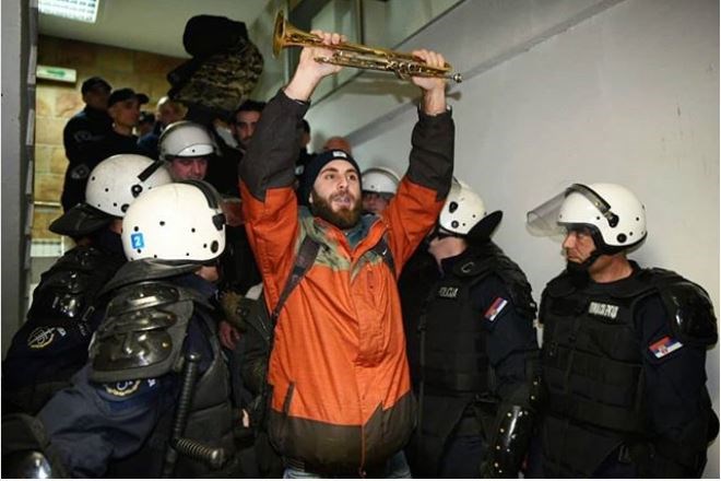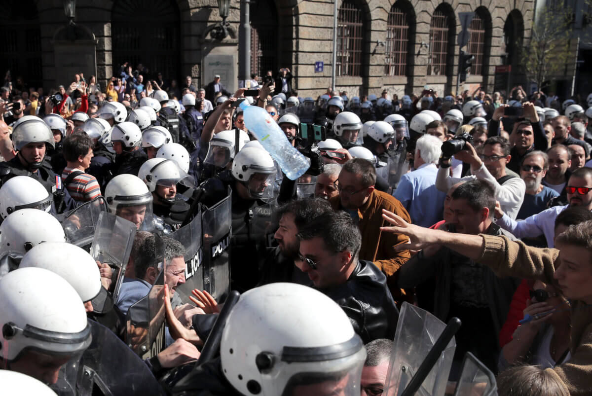 Η αντιπολίτευση διαδηλώνει για περισσότερο από τρεις μήνες ζητώντας την παραίτηση του προέδρου, Αλεξάνταρ Βούτσιτς, και τη δημιουργία κατάλληλων συνθηκών για τη διεξαγωγή δημοκρατικών εκλογών.