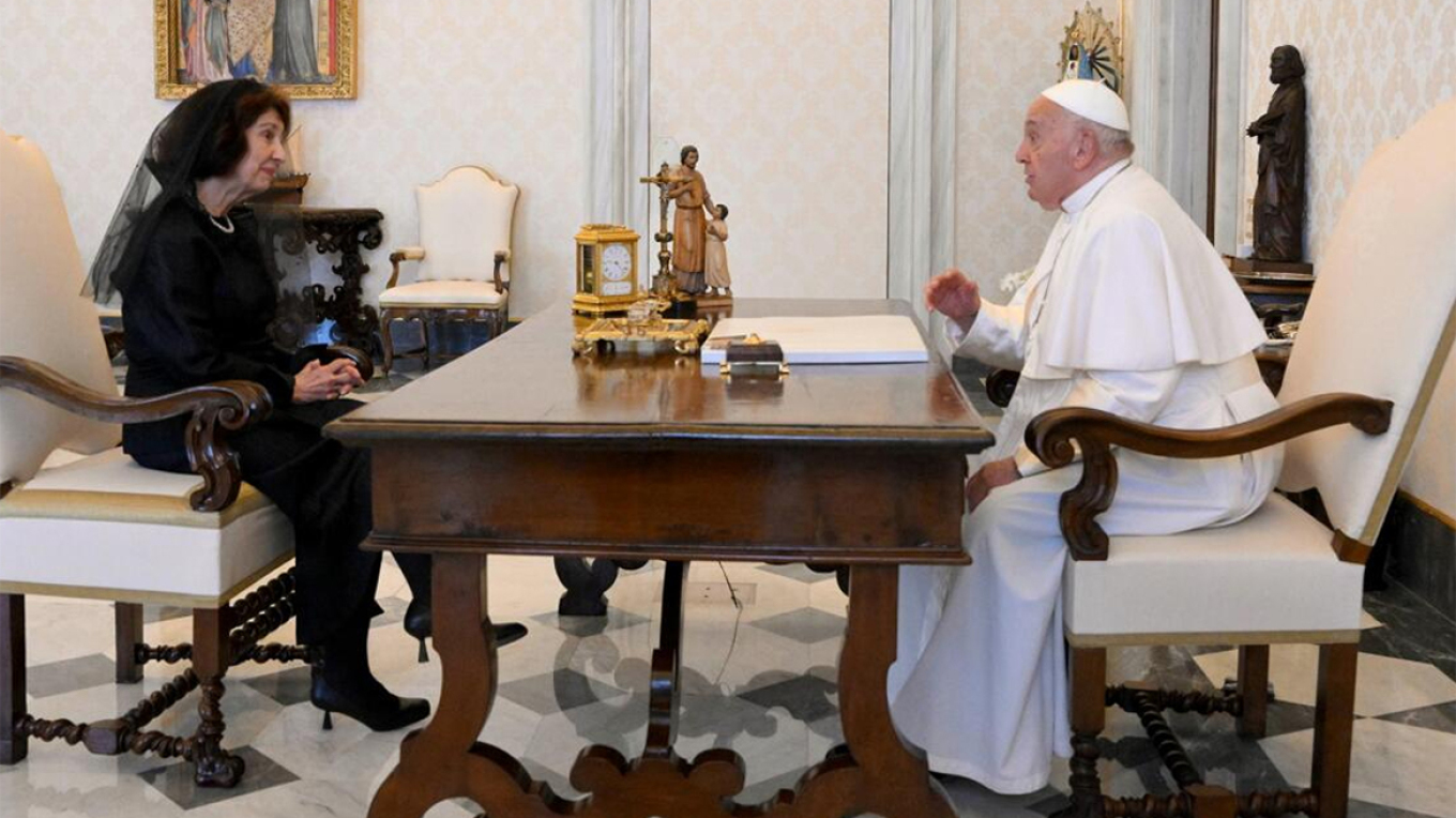 Η νέα πρόεδρος των Σκοπίων συναντήθηκε σήμερα με τον Πάπα στο Βατικανό και σε ανάρτησή της στην πλατφόρμα «Χ» αναφέρει ότι ευχαρίστησε τον Πάπα Φραγκίσκο εκ μέρους όλων των “Μακεδόνων πολιτών” για τη σταθερή υποστήριξή του στην ευρωπαϊκή προοπτική των Δυτικών Βαλκανίων.