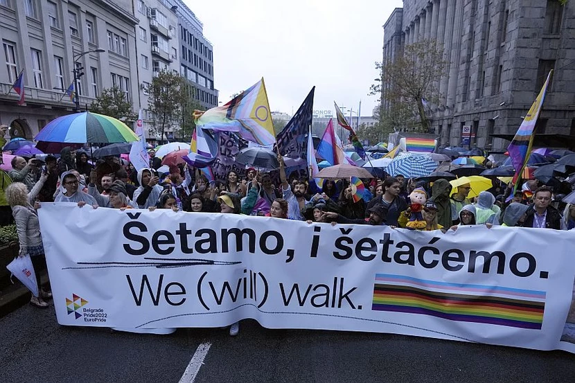 Η πορεία υπερηφάνειας, που αποτελεί την κορύφωση των εκδηλώσεων τις εβδομάδας του «EuroPride 2022», πραγματοποιήθηκε κανονικά απόψε στο Βελιγράδι παρά την απαγόρευση της από την αστυνομία.