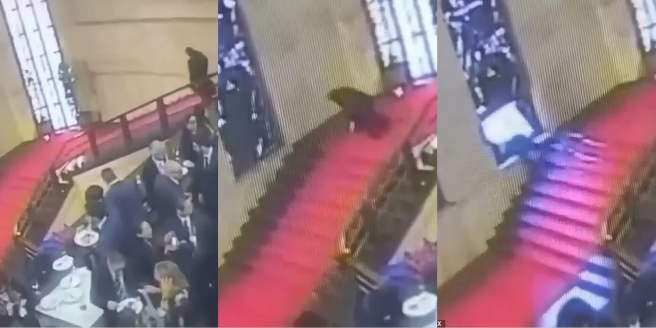 Στις εικόνες από δεξίωση στο υπουργείο στις 12 Νοεμβρίου διακρίνεται ο Εμανουέλε Κάνι, περιφερειακός σύμβουλος της Σαρδηνίας και αρμόδιος για θέματα βιομηχανίας, να μπουρδουκλώνεται κατεβαίνοντας τις σκάλες.