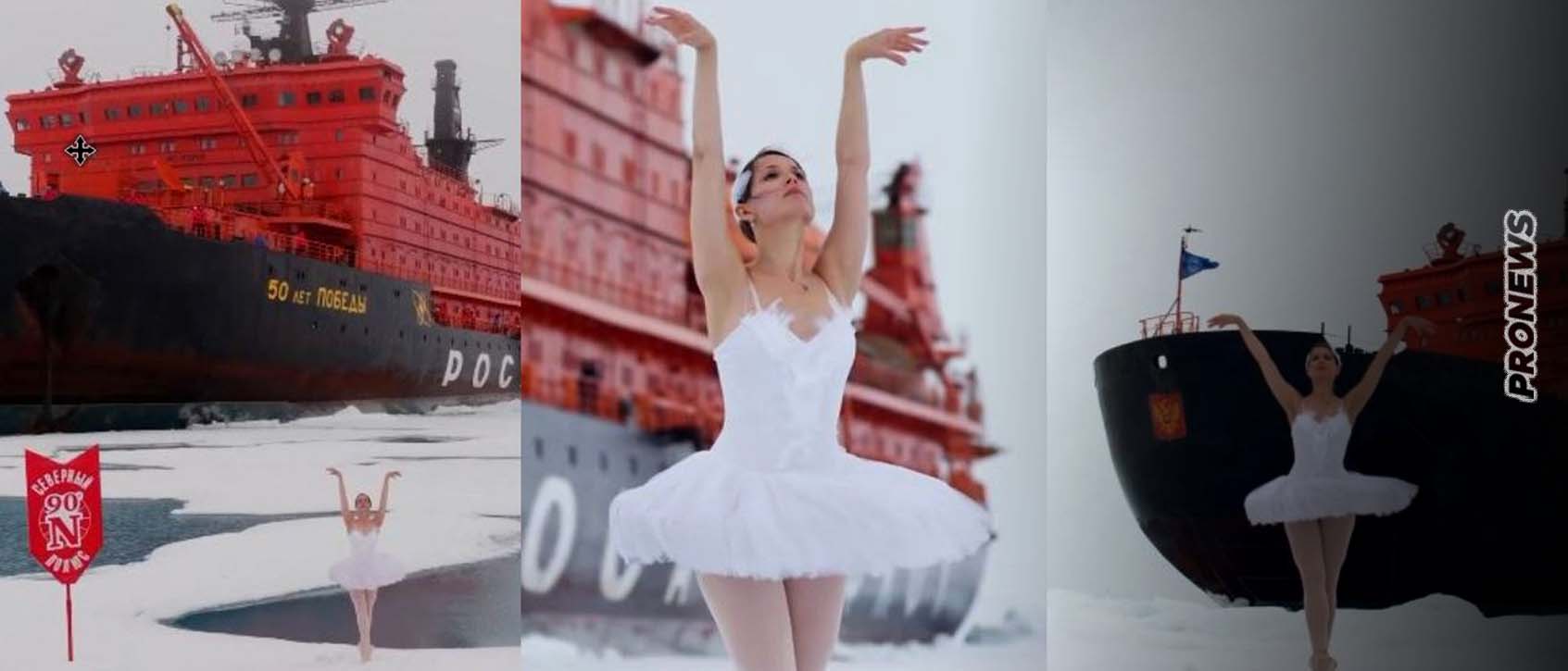 Η Ρωσίδα Ντάρια Πέντσεβα, μάνατζερ εταιρείας που διοργανώνει κρουαζιέρες και ερασιτέχνιδα μπαλαρίνα ερμήνευσε μια σκηνή από την φημισμένη «Λίμνη των Κύκνων» του μεγάλου Ρώσου συνθέτη, Πιοτρ Ιλίτς Τσαϊκόφσκι, στους πάγους του Βόρειου Πόλου.