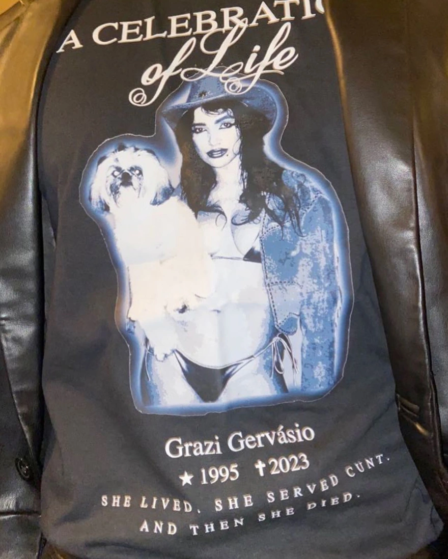 Σύμφωνα με τη New York Post, η Γκερβάζιο ήθελε το πάρτι της να θυμίζει πραγματική αγρυπνία, και οι φίλοι της της έκαναν το χατίρι αποτίοντας φόρο τιμής στην influencer ενώ εκείνη κειτόταν σε ένα ξύλινο φέρετρο, κρατώντας ένα μπουκέτο λουλούδια. Τον χώρο κοσμούσαν αφίσες με την ίδια σε ρόλο αγγέλου: «Σε αγαπάμε Γράζι, μας λείπεις» έγραφε μία από αυτές.