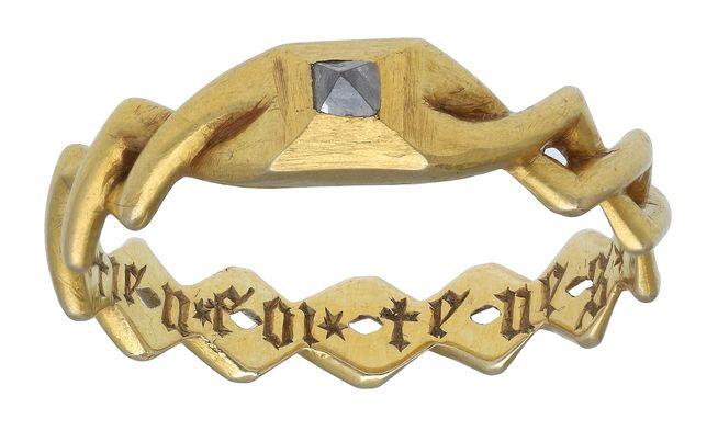 Χαραγμένη στο δαχτυλίδι είναι μια μεσαιωνική γαλλική επιγραφή που γράφει, «Ieo vos tien foi tenes le moy», που μεταφράζεται ως, «Κρατάω την πίστη σου, κράτα τη δική μου», σύμφωνα με τον οίκο δημοπρασιών.