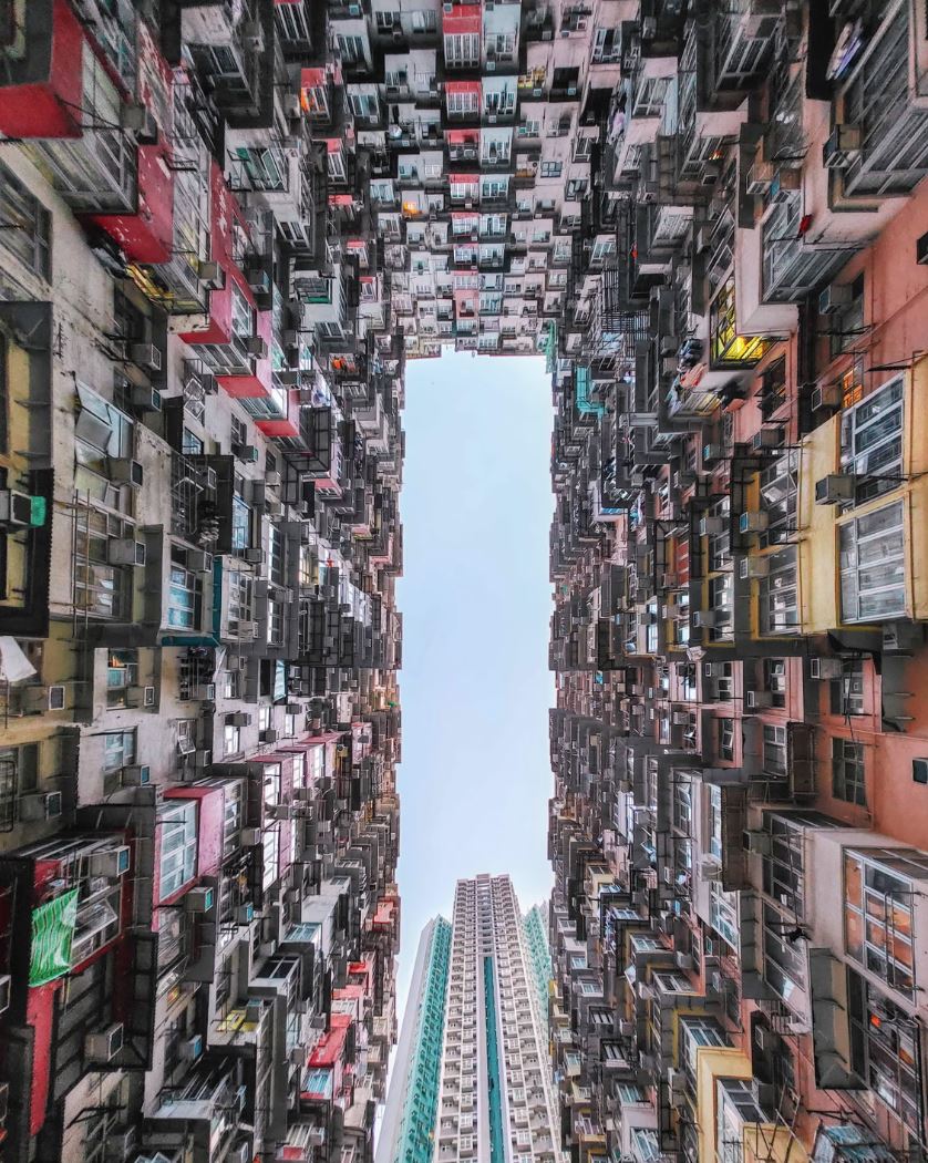 Το κτίριο Yick Cheong που φαίνεται στη συγκεκριμένη φωτογραφία, γνωστό στην καθομιλουμένη ως Monster Building ή Monster Mansion, συνήθως σφύζει από ντόπιους και τουρίστες.