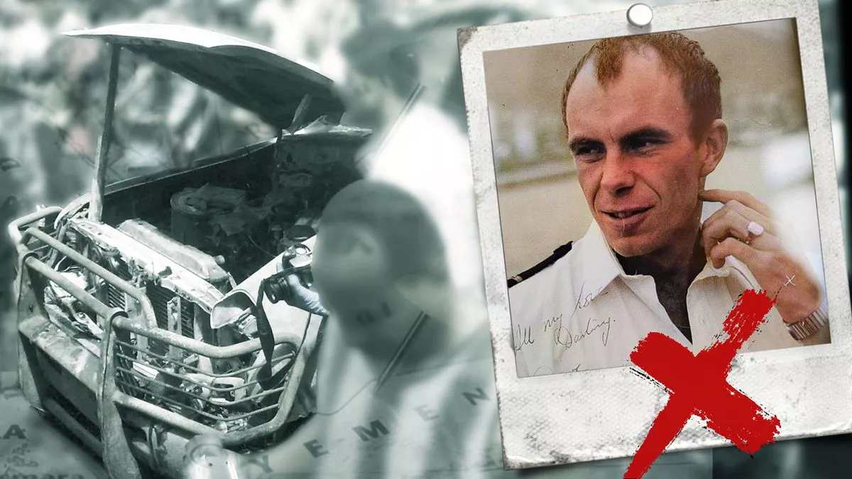 Ο Ντέιβιντ Μόκετ και μια φωτογραφία του αυτοκινήτου του μετά την έκρηξη που σκότωσε τον Μόκετ το 2011.