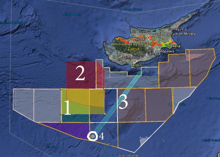 Η περιοχή φτάνει οριακά μέχρι και τα όρια της ζώνης διέλευσης των σκαφών υποστήριξης της γεώτρησης του West Capella, ενώ επικαλύπτει και σημαντικό μέρος της περιοχής που «δεσμεύτηκε» για τις παράνομες δραστηριότητες του «Μπαρμπαρός» εντός της κυπριακής ΑΟΖ.