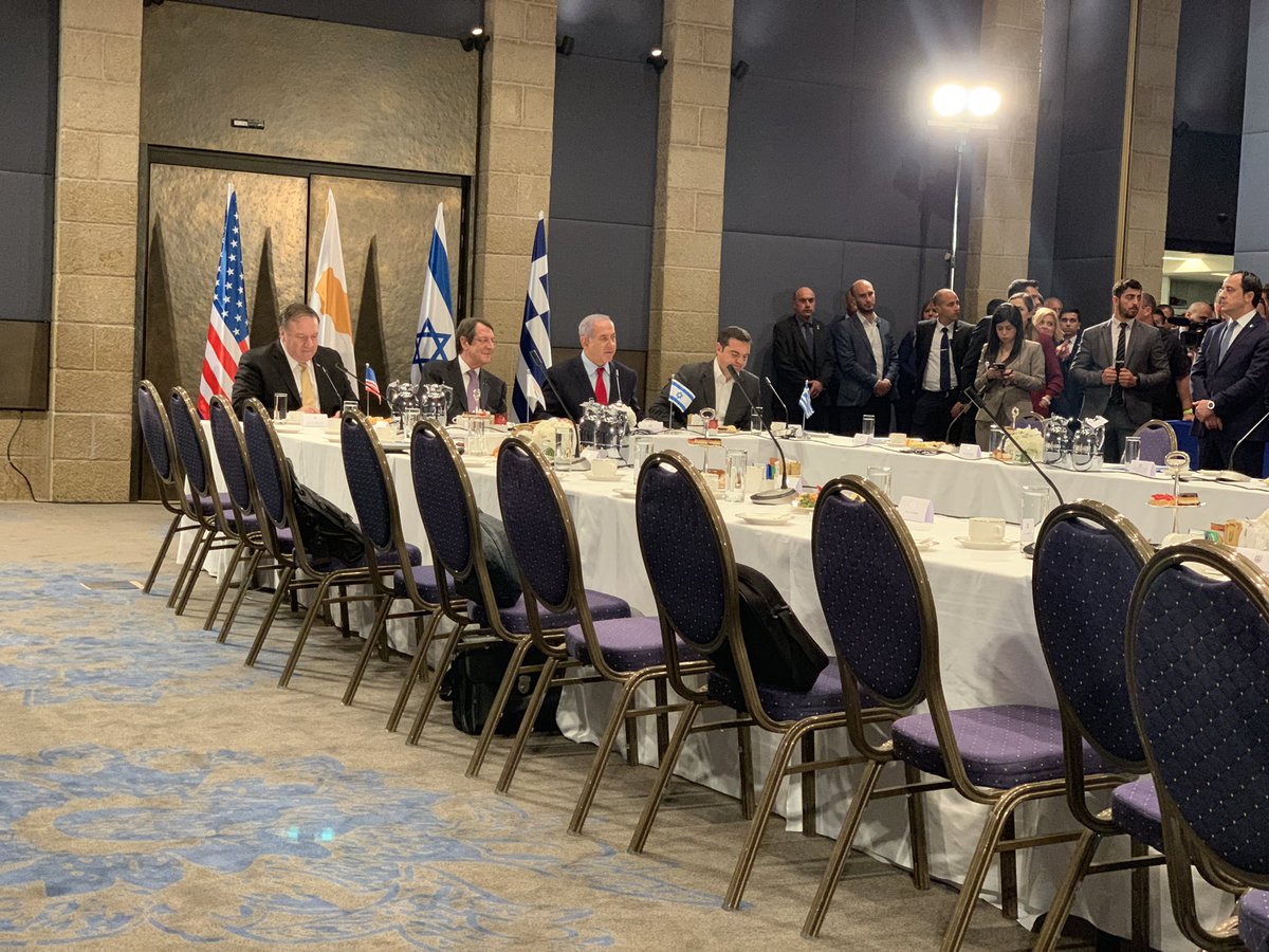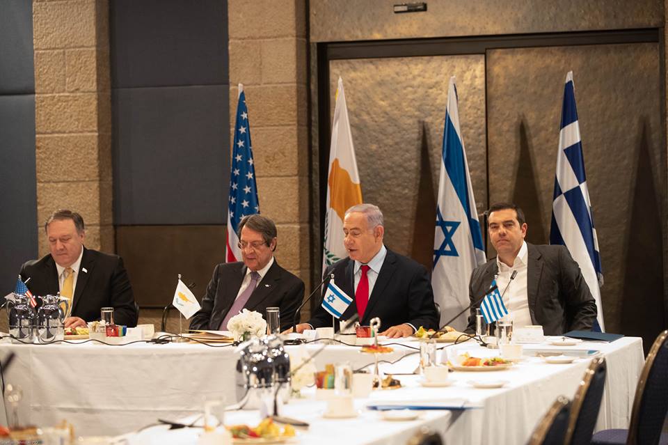 Πλήρη στήριξη στους σχεδιασμούς Κύπρου, Ελλάδας και Ισραήλ από την Ουάσιγκτον, στο επίκεντρο της Συνόδου Κορυφής στην Ιερουσαλήμ. Η παρουσία Μάικ Πομπέο, συνοδεύτηκε από ισχυρά μηνύματα αναφορικά με την ανάγκη αναβάθμιση της ενεργειακής και περιφερειακής ασφάλειας στην Ανατολική Μεσόγειο και της μεταφοράς των φυσικών πόρων των τριών χωρών προς την Ευρώπη. Ανέφερε ότι Ηνωμένες Πολιτείες, Ισραήλ, Κύπρος και Ελλάδα είναι στρατηγικοί εταίροι στην ασφάλεια και την ευημερία