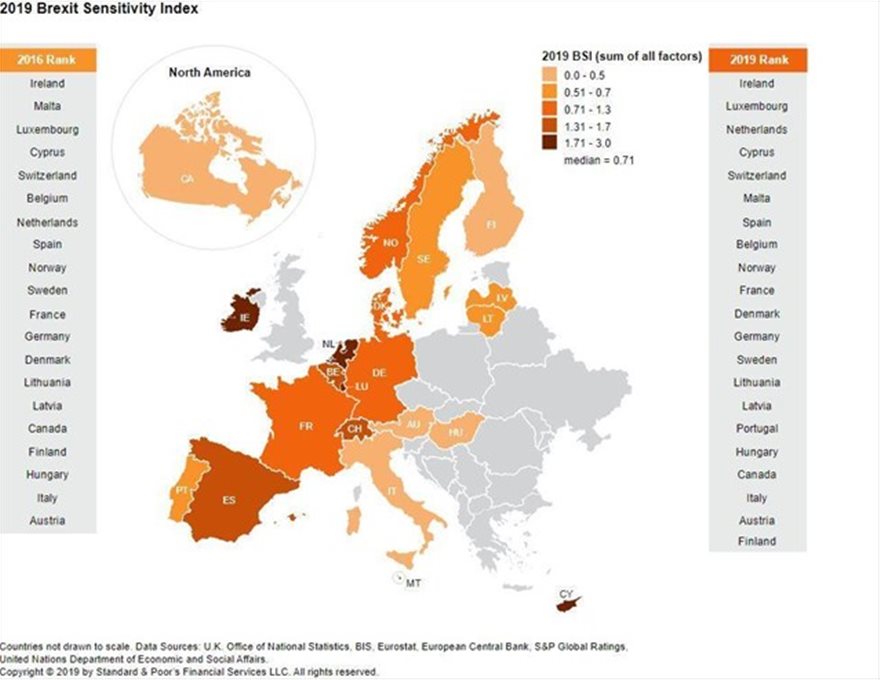 Είναι δεδομένο το Brexit; Είναι. Με ή χωρίς συμφωνία. Πόσο θα επηρεάσει τις οικονομίες η έξοδος της Βρετανίας από την Ευρωπαϊκή Ένωση και ποιους; Στο ερώτημα αυτό απαντά η έρευνα-αξιολόγηση του οίκου Standard & Poor’s.