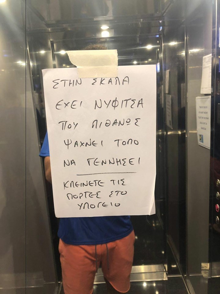 Εκεί, ο διαχειριστής ενημέρωσε τους κατοίκους πως μία νυφίτσα, ναι νυφίτσα, είναι στις σκάλες και ψάχνει μέρος για να γεννήσει, ζητώντας από τους υπόλοιπους να κλείνουν τις πόρτες.