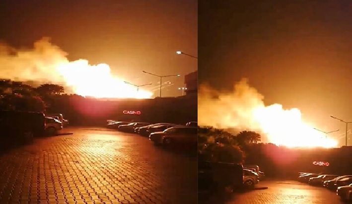 Η φωτιά που ξέσπασε μετά την έκρηξη έχει τεθεί υπό έλεγχο και έχει διασφαλιστεί πλήρως η ασφάλεια της περιοχής”.