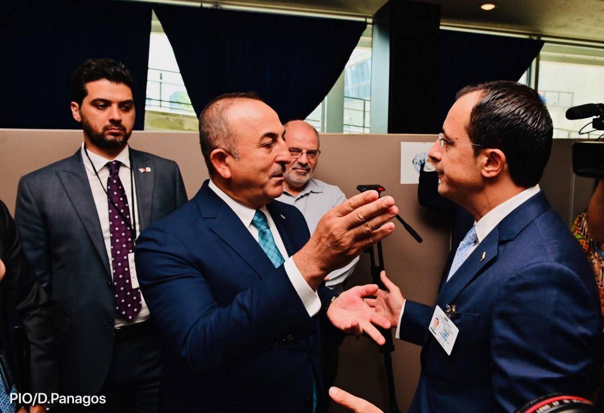 Μία απρόσμενη, δημόσια συνάντηση είχαν οι υπουργοί Εξωτερικών της Κύπρου και της Τουρκίας, στο περιθώριο των εργασιών της Γενικής Συνέλευσης του Οργανισμού Ηνωμένων Εθνών.