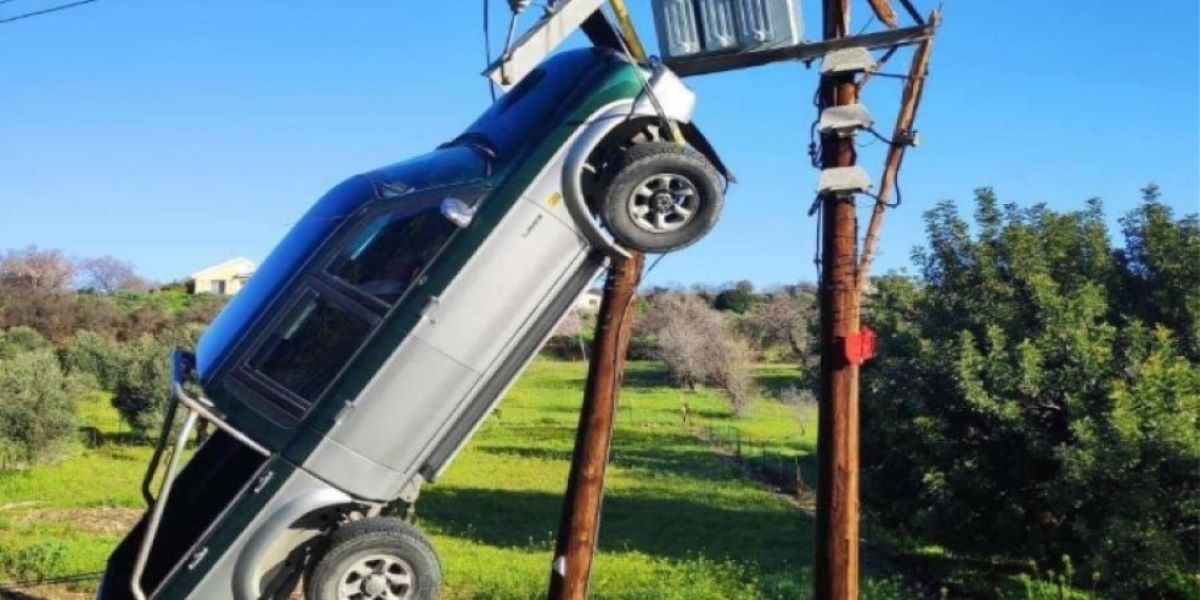 Οι κάτοικοι του χωριού Λιμνάτι είδαν ένα όχημα να «ίπταται» σε μια κολώνα – Ο οδηγός ζητούσε βοήθεια για να κατέβει