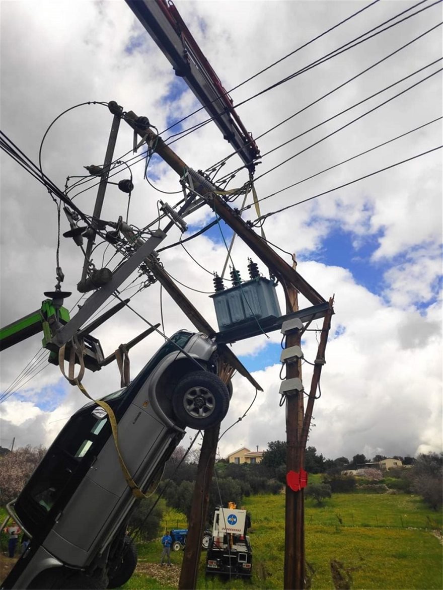 Το αγροτικό όχημα είχε κρεμαστεί στη κολόνα και ο οδηγός ζητούσε βοήθεια για να κατέβει. Ο οδηγός, ένας ηλικιωμένος κάτοικος της περιοχής, είχε αναπτύξει μεγάλη ταχύτητα, έχασε τον έλεγχο και βρέθηκε στη κολόνα, ευτυχώς χωρίς να τραυματιστεί. Από το ατύχημα διακόπηκε για ώρες η ηλεκτροδότηση της περιοχής.
