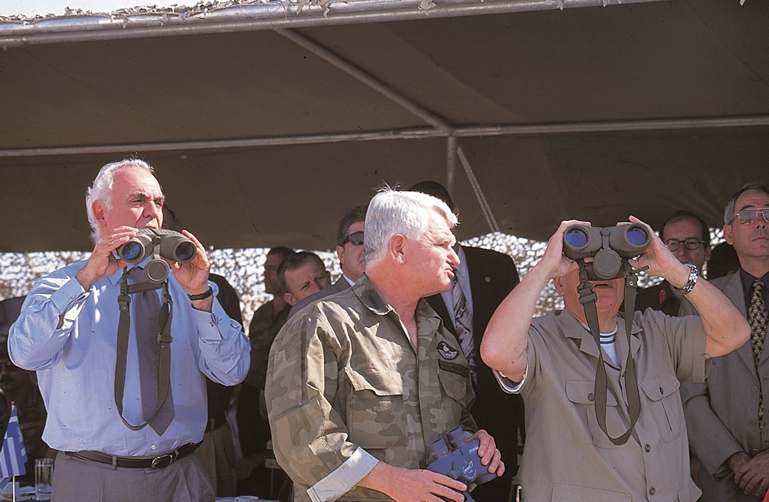 Οι τρεις προσωπικότητες που στήριξαν εμπράκτως και με επιμονή το Δόγμα του ΕΑΧ, ενώ παρακολουθούν τα αποτελέσματα βολών στην άσκηση «Νικηφόρος-Τοξότης» 2000.