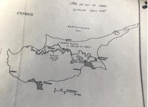 Ο χάρτης αυτός (του Υπ. ‘Αμυνας του ΗΒ 1989) με «τουρκοκυπριακή περιοχή» και «ελληνοκυπριακή περιοχή» και ο «λεγόμενος Χάρτη Γκάλι» (1992) συνόδευαν σύνοψη για το ιστορικό του Κυπριακού από το Φ.Ο στον πρωθυπουργικό φάκελο