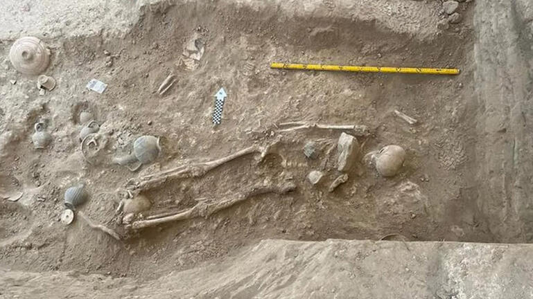 Μεταξύ των νεκρών ήταν μία γυναίκα που περιβάλλεται από δεκάδες κεραμικά αγγεία, κοσμήματα και έναν στρογγυλό μπρούτζινο καθρέφτη. Μαζί της στον τάφο βρίσκονταν τα οστά ενός παιδιού, περίπου ενός έτους, που είχε θαφτεί με ένα κεραμικό παιχνίδι.