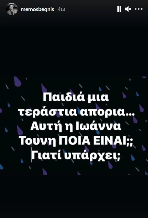 «Παιδιά μια τεράστια απορία. Αυτή η Ιωάννα Τούνη ΠΟΙΑ ΕΙΝΑΙ; Γιατί υπάρχει;»