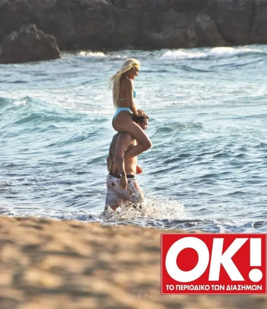 Συγκεκριμένα σύμφωνα με το περιοδικό ΟΚ! απαθανατίστηκαν στην παραλία Λαγκούβαρδος να παίζουν ρακέτες και να πειράζουν ο ένας τον άλλον στη θάλασσα, με τον Δημήτρη Αλεξάνδρου να έχει πάρει στους ώμους του την αγαπημένη του για να παίξουν.