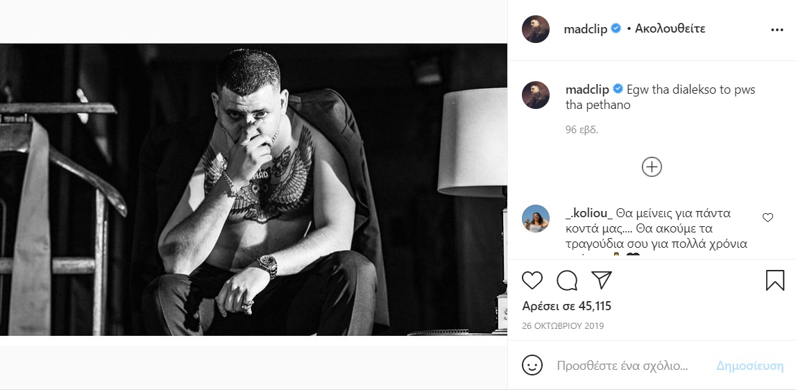 Ανατριχίλα προκαλεί μία ανάρτηση του Mad Clip πριν από δύο χρόνια στο προφίλ του στο Instagram.