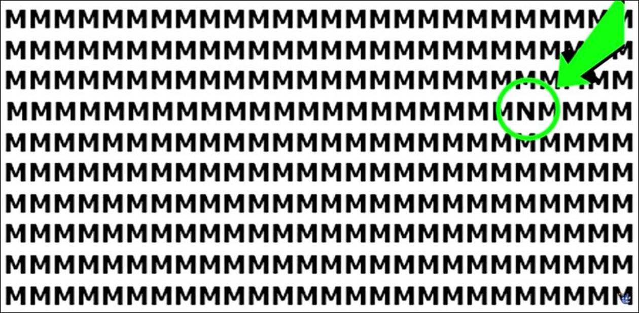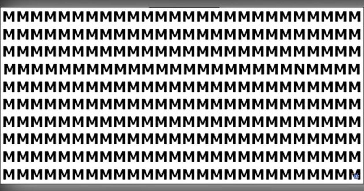 Στην παρακάτω εικόνα, βλέπετε μια σειρά από γράμματα, που φαινομενικά όλα τους είναι ίδια, όμως ανάμεσα στα Μ υπάρχει ένα Ν και αυτό είναι που πρέπει να εντοπίσετε.