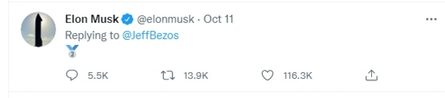 Η απάντηση του Έλον Μασκ, λιτή. Ένα tweet με ένα μετάλλιο, που δείχνει τη θέση… 2, προφανώς υποδεικνύοντας την τελευταία ανανέωση στη λίστα του Forbes.
