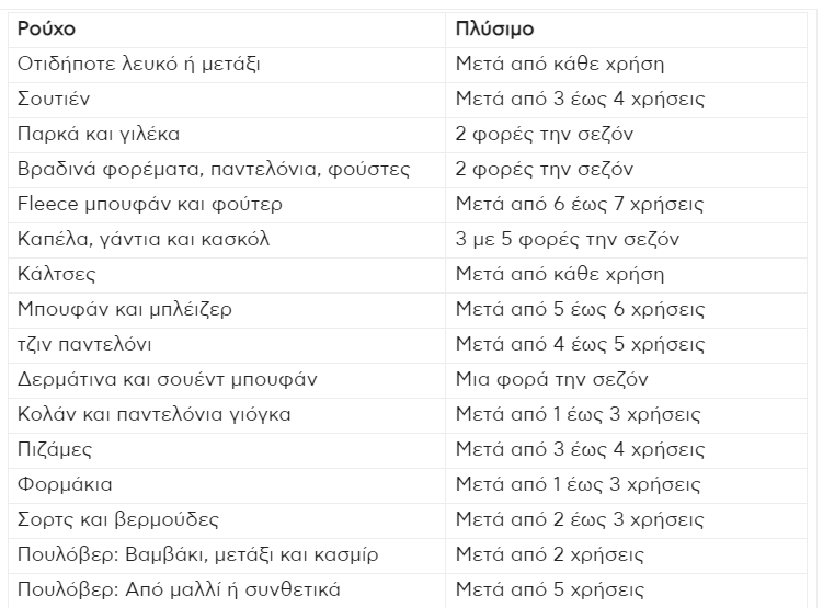 Δείτε πόσο συχνά πρέπει να πλένετε κάθε ρούχο για να είναι πάντα καθαρό.