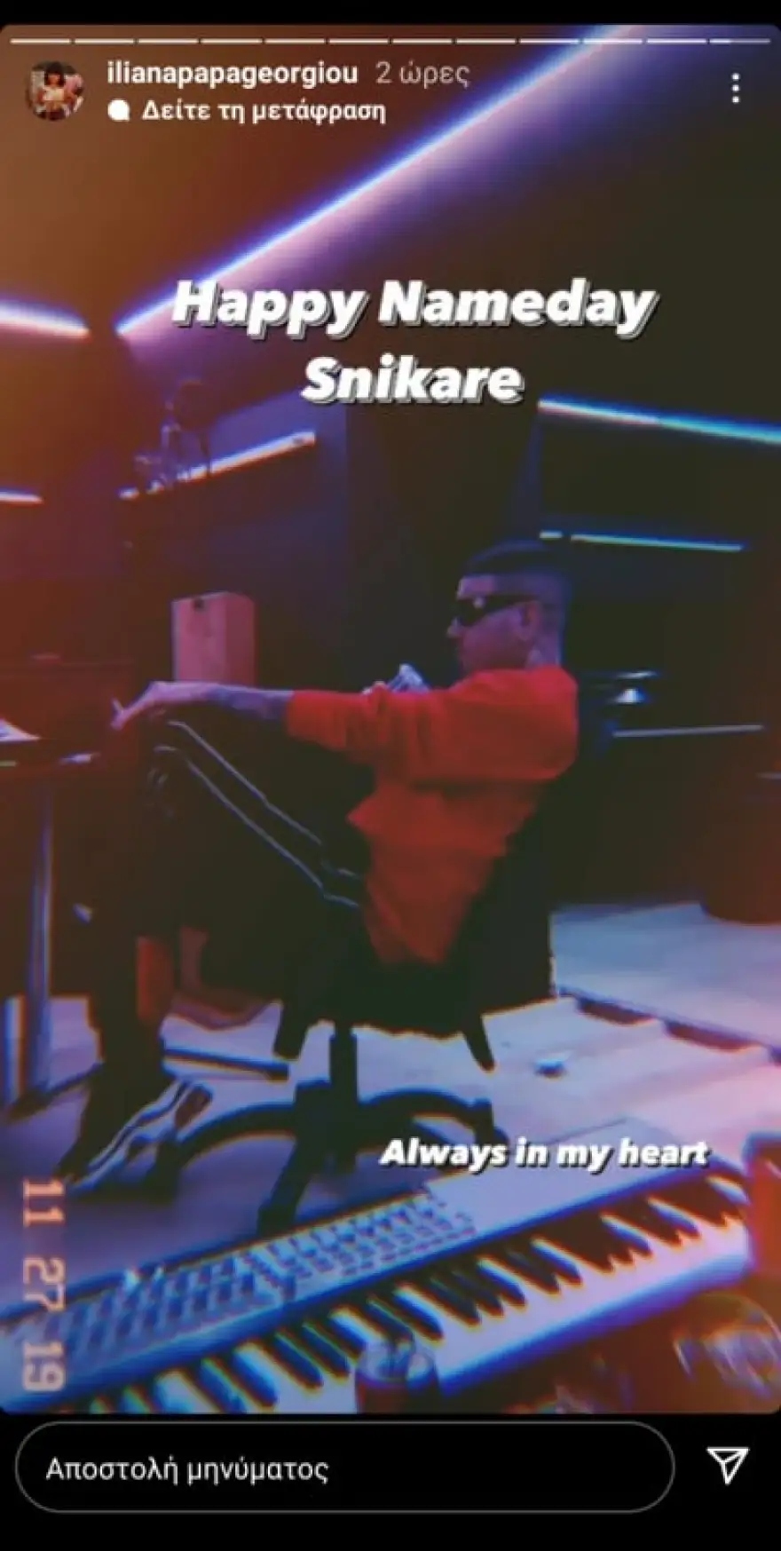 Παρόλα αυτά, η Ηλιάνα Παπαγεωργίου φρόντισε να ευχηθεί στον Snik για την γιορτή του μέσω ενός story στον προσωπικό της λογαριασμό στο Instagram.