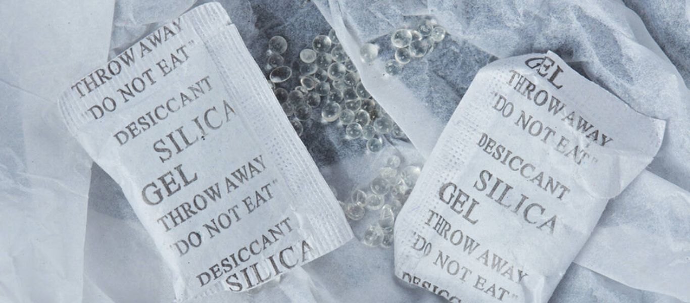 Το Silica gel είναι μια ξηραντική, άοσμη ουσία (μη τοξικοί κόκκοι του διοξειδίου του πυριτίου SiO2) που προστατεύει τα προϊόντα από τη μούχλα και την υγρασία. Συνήθως θα βρει κανείς αυτό το σακουλάκι όπως αναφέραμε παραπάνω σε κουτιά με παπούτσια, τσάντες, ρούχα ακόμη και ηλεκτρονικές συσκευές.