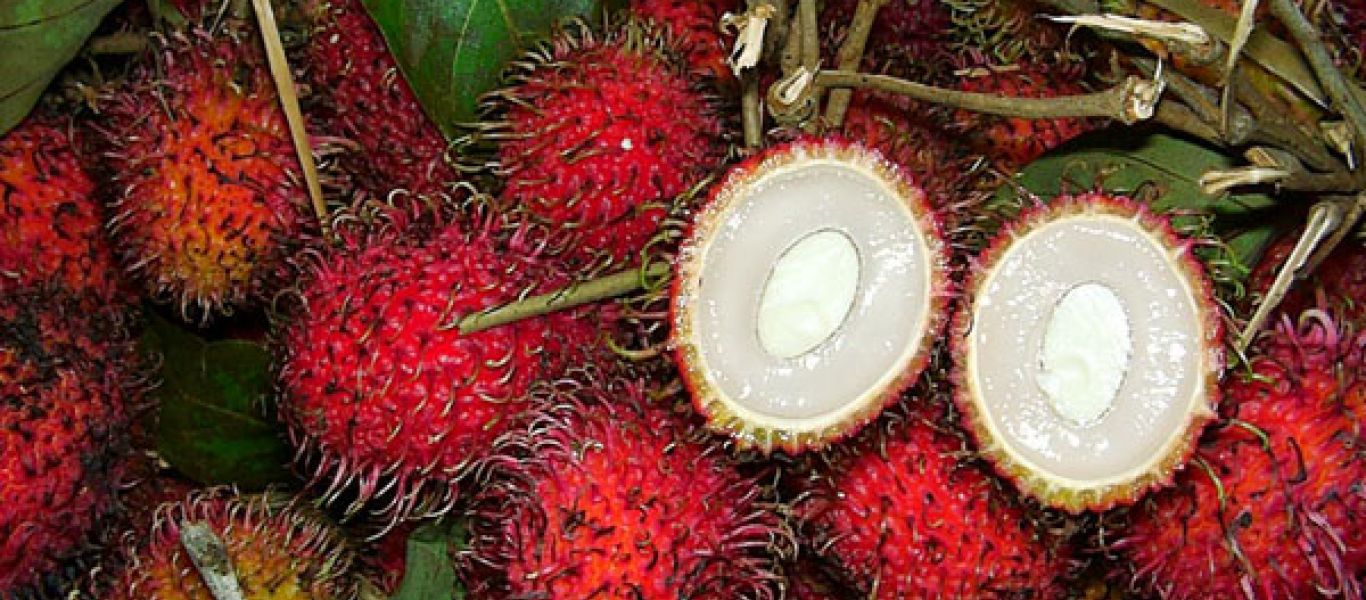 2. Rambutan (Nephelium lappaceum). Ευδοκιμεί στην Ταϊλάνδη και τις Φιλιππίνες και μοιάζει με κάστανο, αφού ο καρπός καλύπτεται από αγκαθωτό περίβλημα. Ο άγγουρος καρπός έχει πράσινο χρώμα, ενώ όταν ωριμάζει αποκτά έντονο κόκκινο χρώμα. Συνήθως χρησιμοποιείται στη ζαχαροπλαστική και λιγότερο ως εδώδιμο φρούτο.