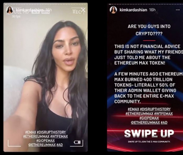 Πιο αναλυτικά και σύμφωνα με τις τελευταίες πληροφορίες, οι δύο celebrities φέρεται να πληρώθηκαν αδρά προκειμένου να διαφημίσουν και να προωθήσουν μέσα από τους προσωπικούς τους λογαριασμούς στα μέσα κοινωνικής δικτύωσης το Ethereum Max, κρυπτονόμισμα, το οποίο δημιουργήθηκε μόλις πριν από έναν μήνα από αγνώστους.