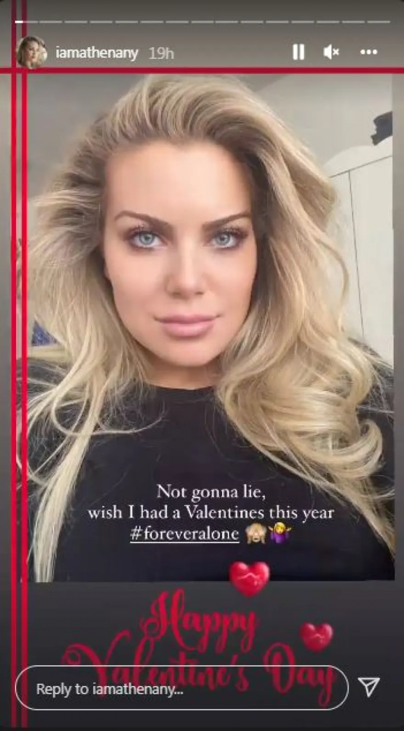 Συγκεκριμένα, στο πρώτο στιγμιότυπο που ανάρτησε, γράφει: «Δεν θα πω ψέματα, ευχόμουν να είχα έναν Βαλεντίνο φέτος. Για πάντα μόνη».