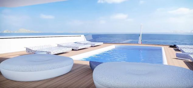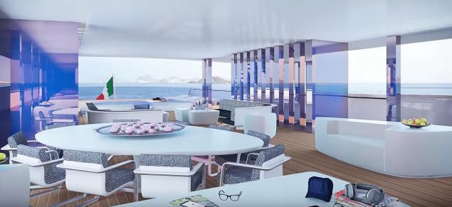 Το γιοτ -ο σχεδιασμός του οποίου αποτελεί προϊόν συνεργασίας της ιταλικής ναυπηγικής εταιρείας Fincantieri και της ολλανδικής Van Geest Designs – «θα εξαφανίζεται ανάμεσα στη θάλασσα και τον ουρανό», όπως λένε οι κατασκευαστές.