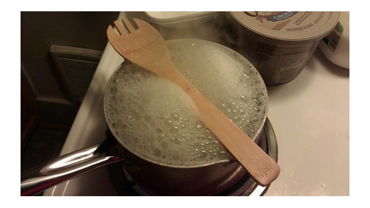 Η λύση από ότι φαίνεται είναι ακόμη πιο απλή, καθώς το μόνο που χρειάζεται να κάνουμε είναι όσο βράζουν τα ζυμαρικά ή το ρύζι να τοποθετούμε μια ξύλινη κουτάλα πάνω στην κατσαρόλα και τέλος το ξεχείλισμα!
