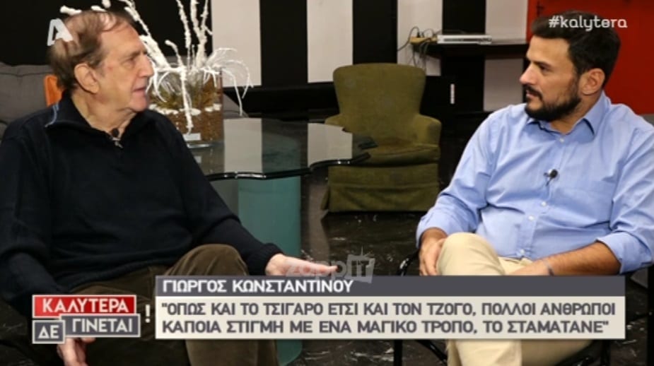 Αναφερόμενος στις γραπτές του εξομολογήσεις για τα πάθη της ζωής του ο Γιώργος Κωνσταντίνου μίλησε στο «Καλύτερα δεν γίνεται και στον Κώστα Τσουρό για τον τζόγο, αλλά και το πως το καταστροφικό του πάθος τον έσωσε εν τέλει από την οικονομική καταστροφή που του συνέβη με παραγωγή στο θέατρο