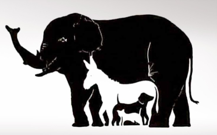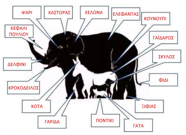 Εκ πρώτης όψεως είναι εύκολο να διακρίνετε έναν ελέφαντα, έναν γάιδαρο, έναν σκύλο, μια γάτα. Ωστόσο, η εικόνα κρύβει πολύ περισσότερα ζώα. Για την ακρίβεια… 16!