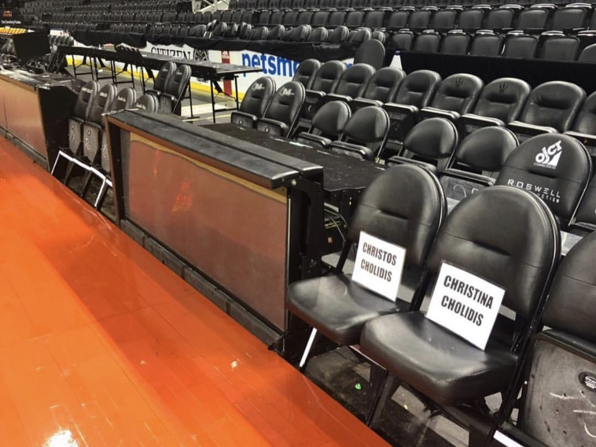 Το Χρήστο και την αδερφή του Χριστίνα, τους περιμένουν με reserve καρέκλες στην πρώτη θέση, δίπλα στο παρκέ στο γήπεδο στολίδι των Toronto Raptors. Ιδού και η απόδειξη στις παρακάτω φωτογραφίες: