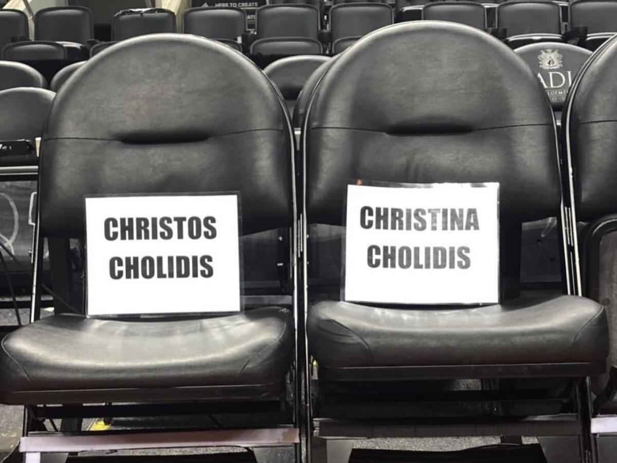 Το Χρήστο και την αδερφή του Χριστίνα, τους περιμένουν με reserve καρέκλες στην πρώτη θέση, δίπλα στο παρκέ στο γήπεδο στολίδι των Toronto Raptors. Ιδού και η απόδειξη στις παρακάτω φωτογραφίες: