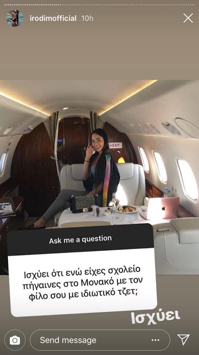 Επιπρόσθετα, οι απειλές στον γνωστό φωτογράφο δεν ήταν τα μόνα stories που προκαλούν το ευρύ κοινό. Ειδικότερα, το νεαρό -wanna be- μοντέλο διαφημίζει ότι ενώ είχε σχολείο, πήγαινε στο Μονακό με τον φίλο της με… ιδιωτικό τζετ!